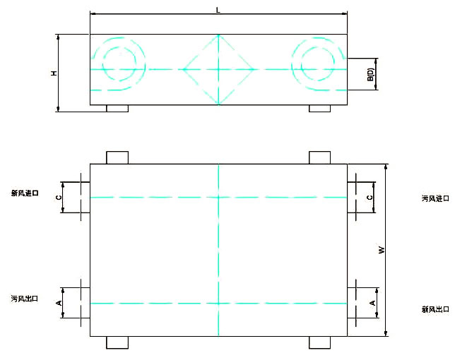 型号 L W H 出风口尺寸 进风口尺寸